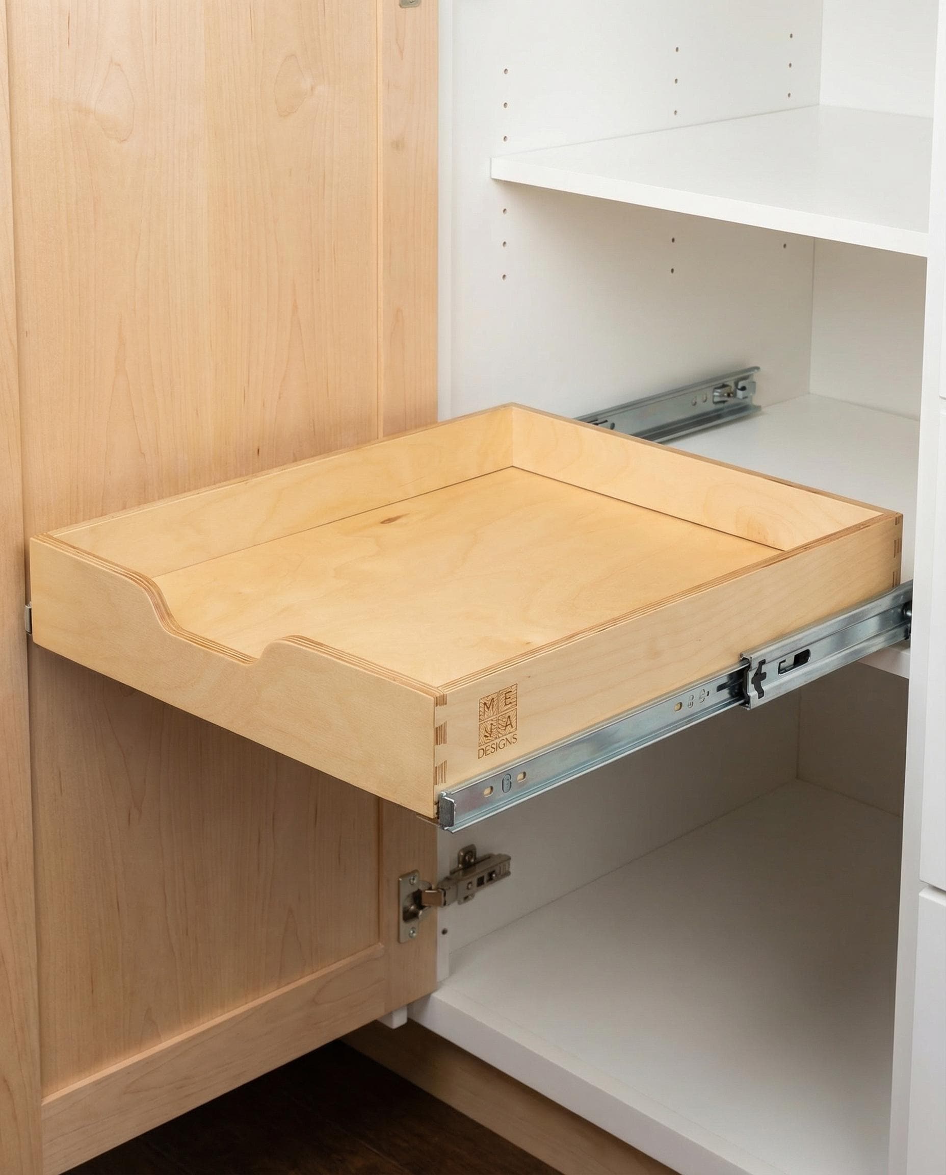 Want to add slide out drawers to kitchen cabinets for storage and organization? Can’t find a replacement drawer to correctly fit your office desk, vanity table, chest or closet cabinet? Whether you’re needing a drawer replaced or simply want to personalize your space, our handmade drawer boxes are tailored precisely to your needs and specifications.