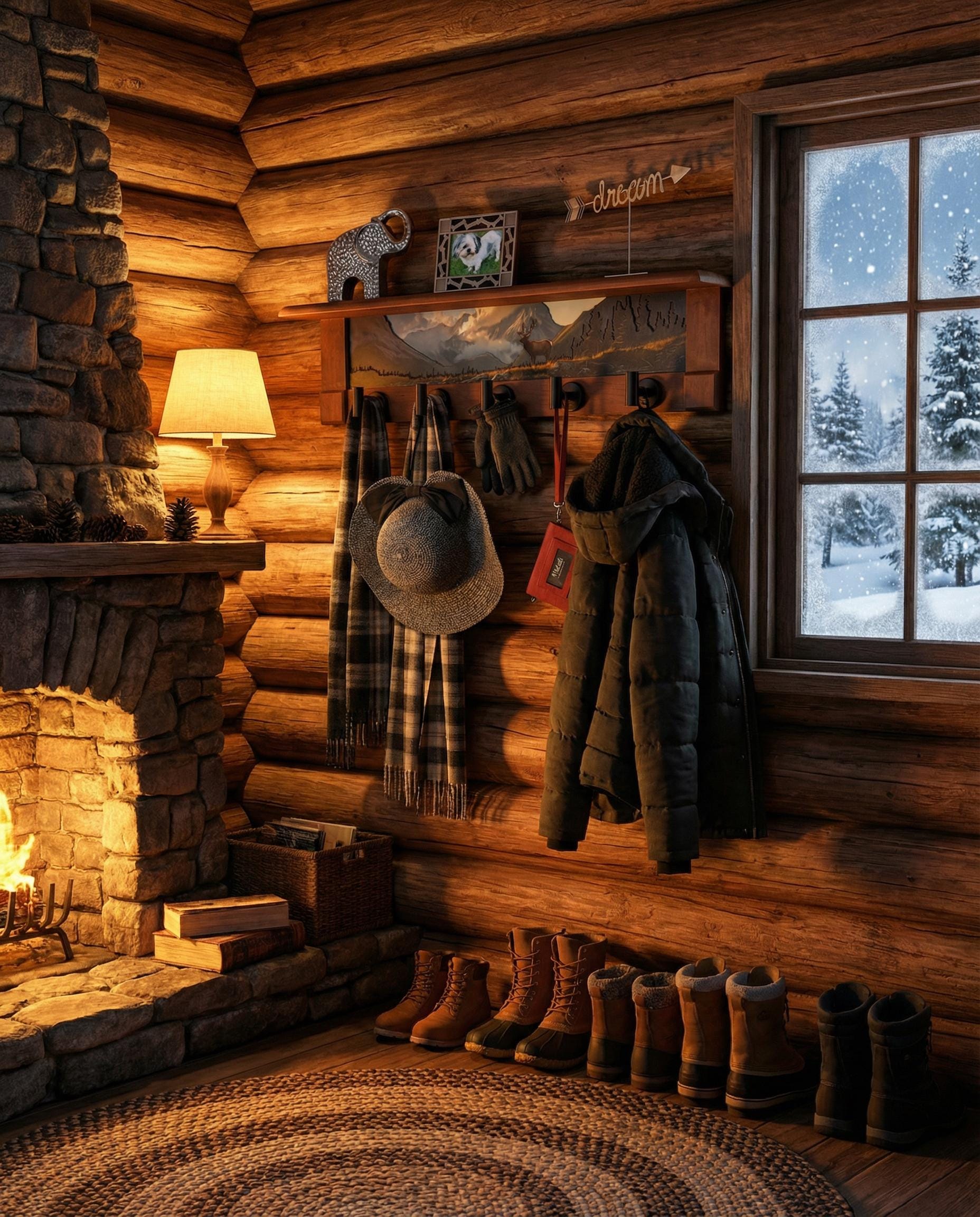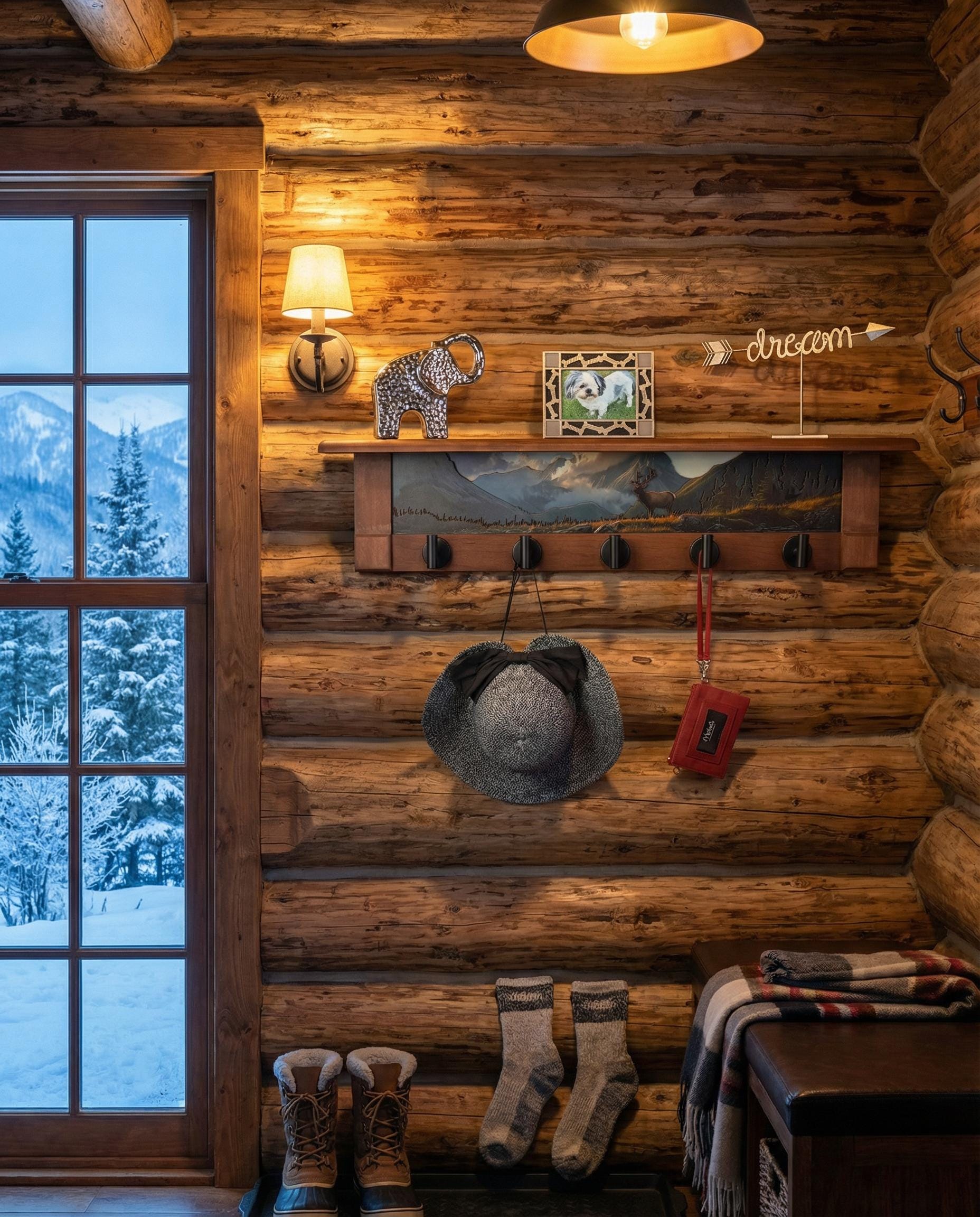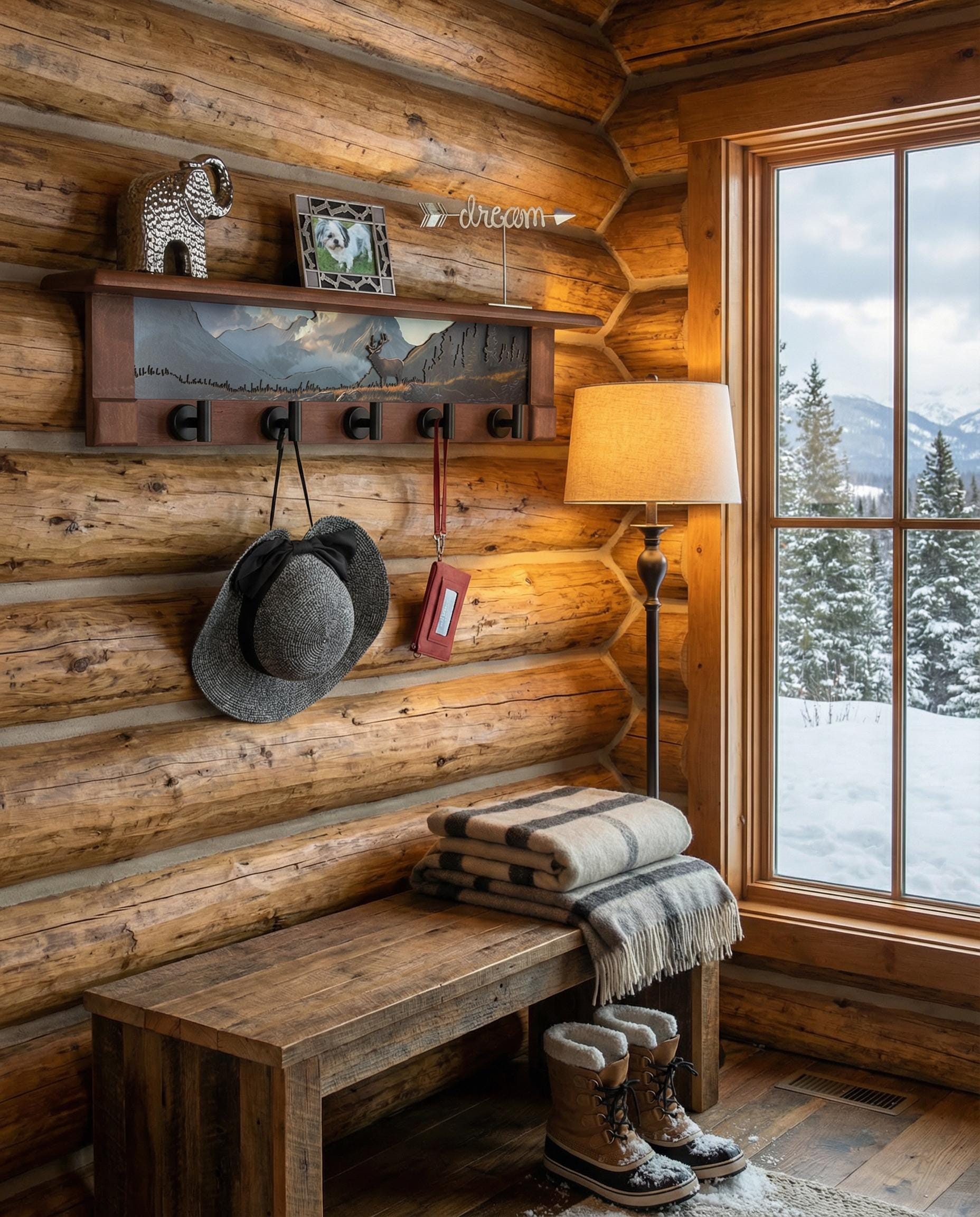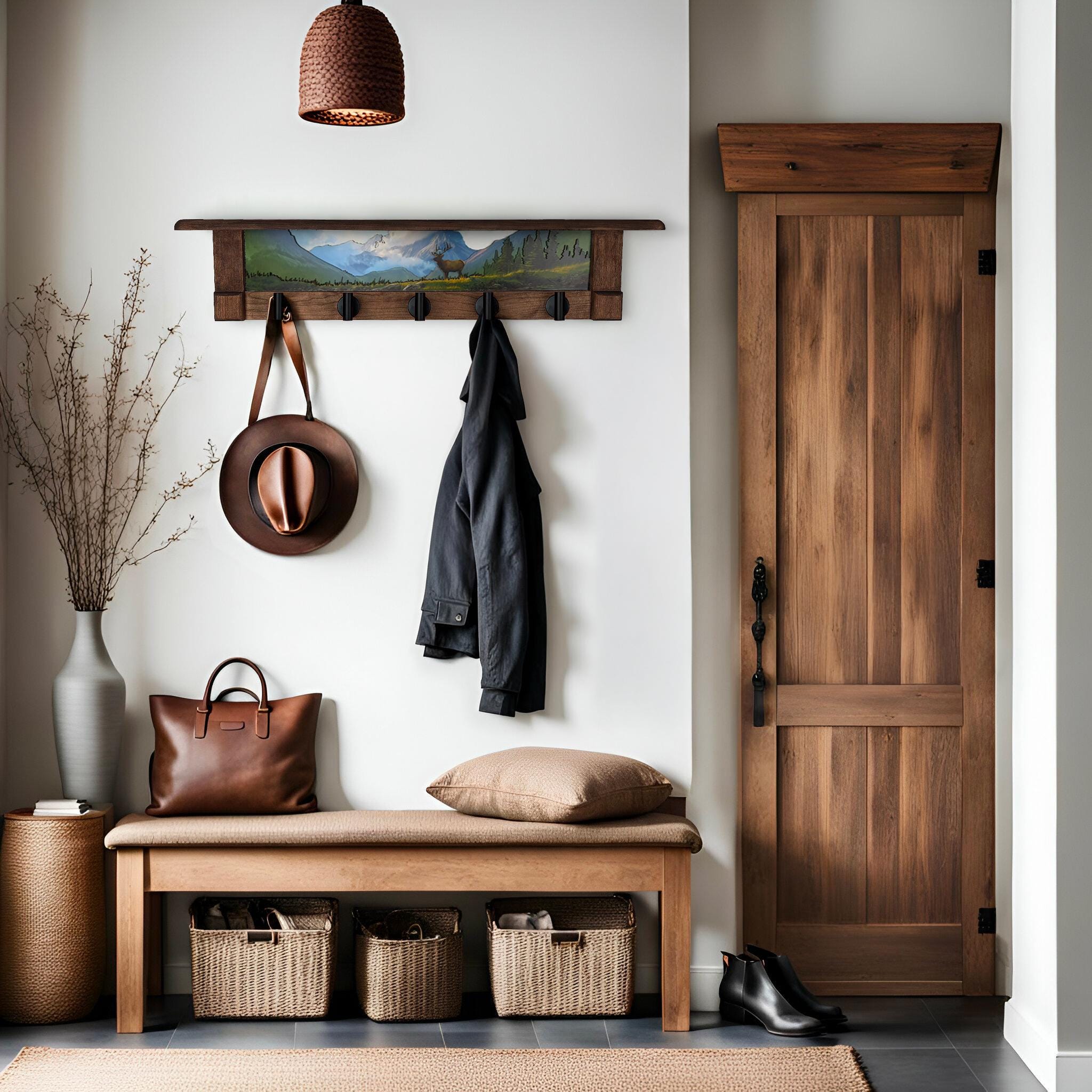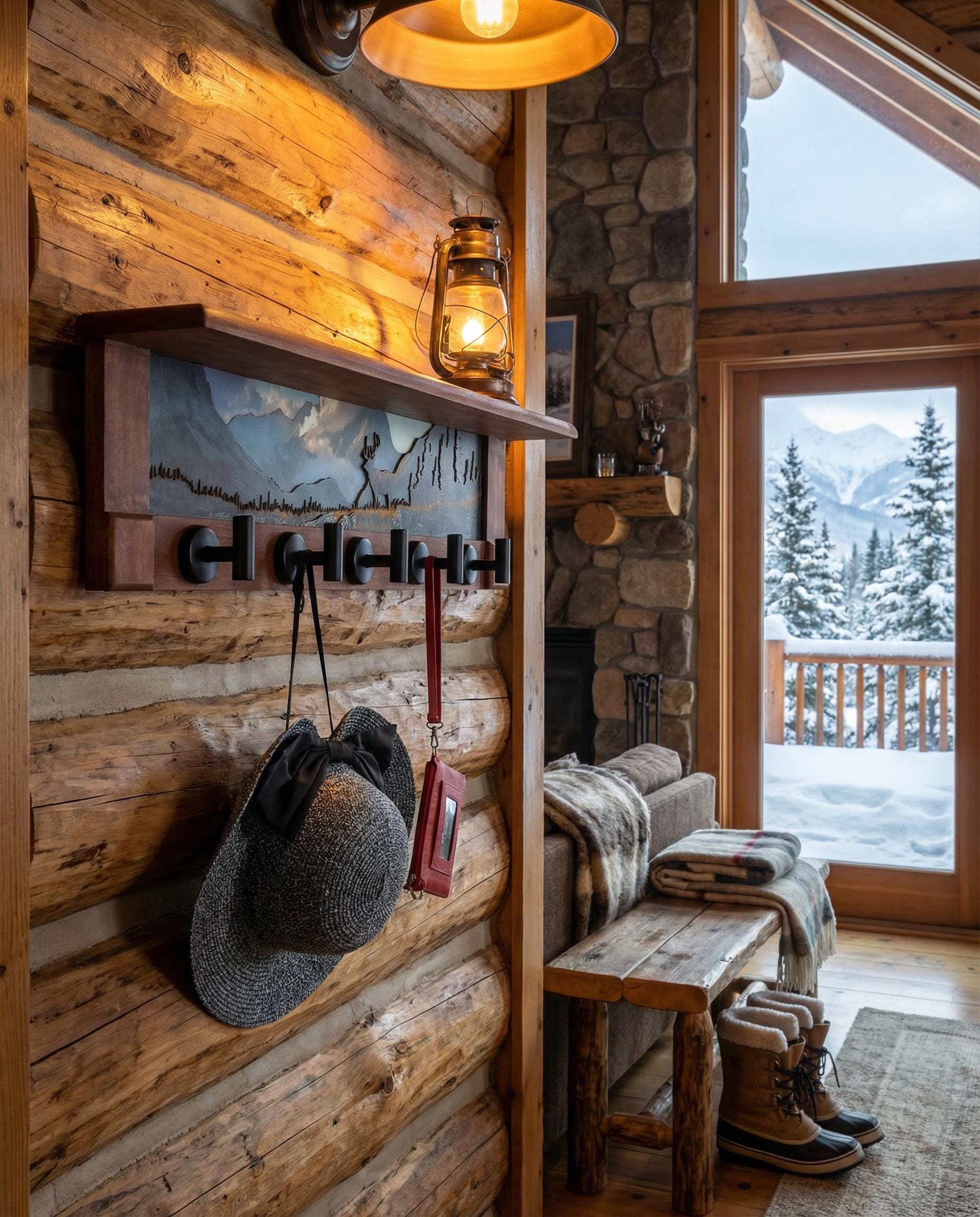 Rustic Wall Coat Rack with Shelf: Entryway Organizer with Black Hooks | Mountain Meadow Elk