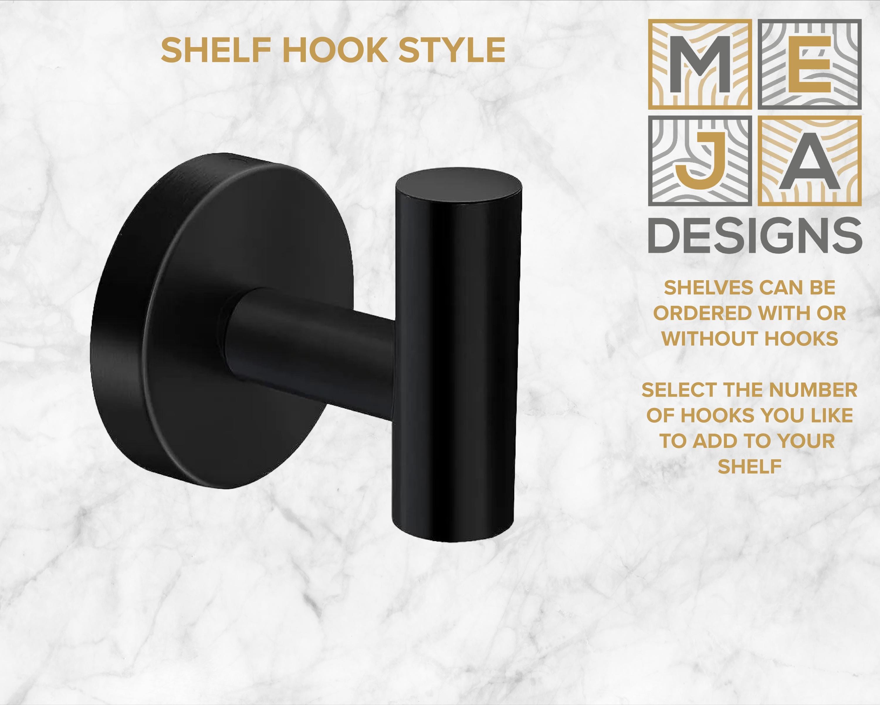 The shelf includes a row of sturdy hooks (perfect for everyday essentials) with room on top for decor, plants, frames, or keys.