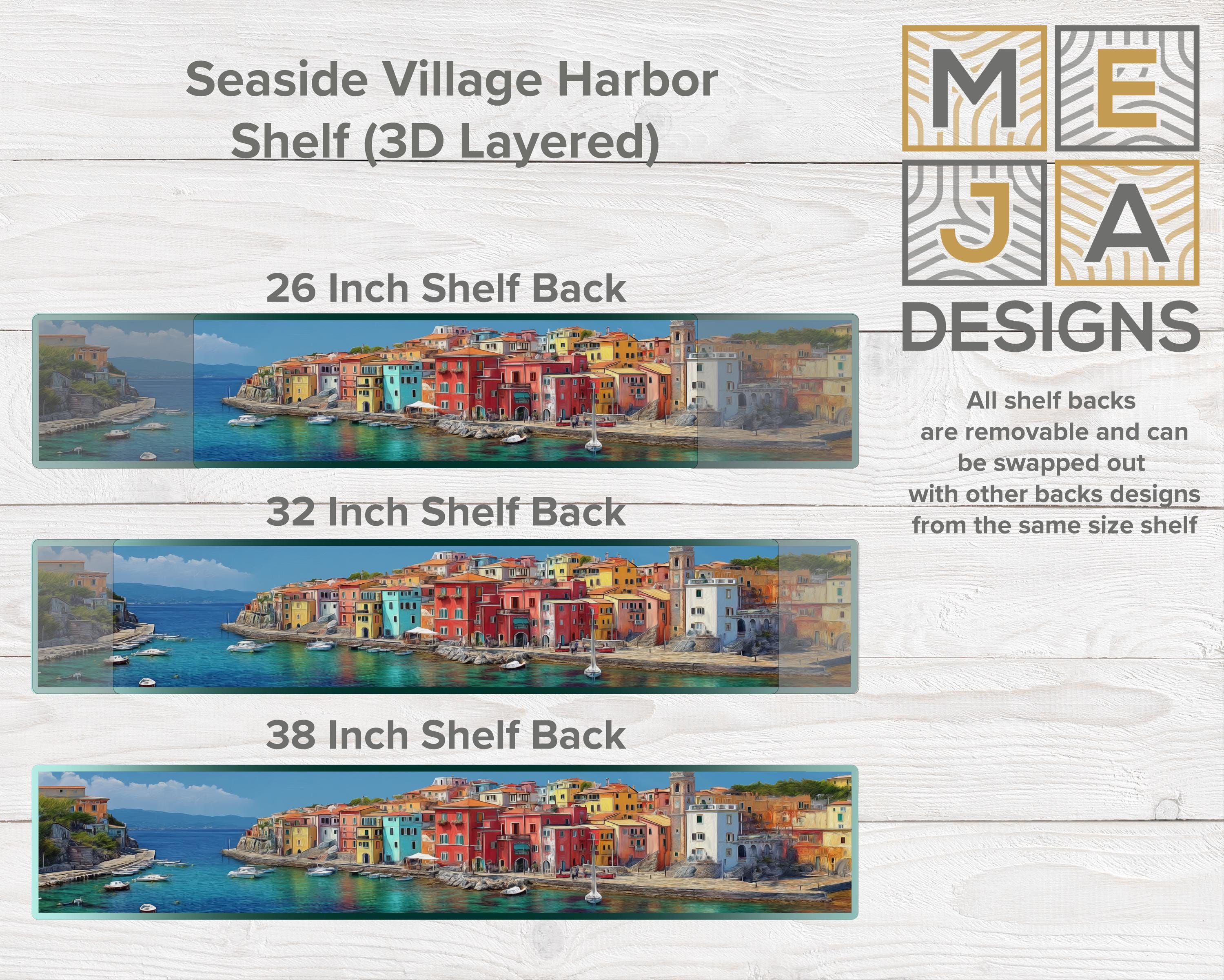 3D Layered Coastal Harbor Artwork – Handcrafted scenic backer featuring a vibrant seaside village, hillside architecture, and tranquil blue waters with dimensional depth.